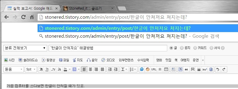 한글이 안쳐져요 해결법 #3 (인터넷 주소창에서 한글을 입력.)