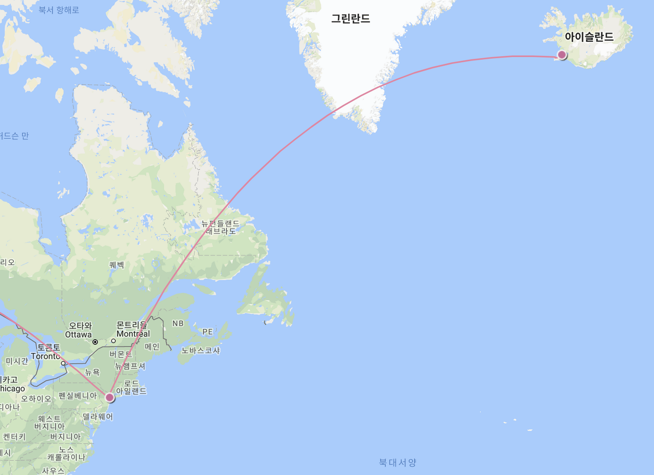 아이슬란드까지의 비행시간과 거리