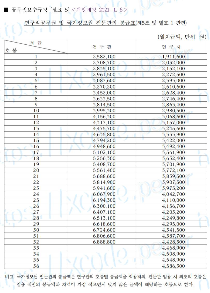 2021년 연구원 월급은 대략 1.7%인상될 전망이니 2021 연구직공무원 호봉표를 다음과 같이 예상해 볼 수 있다.