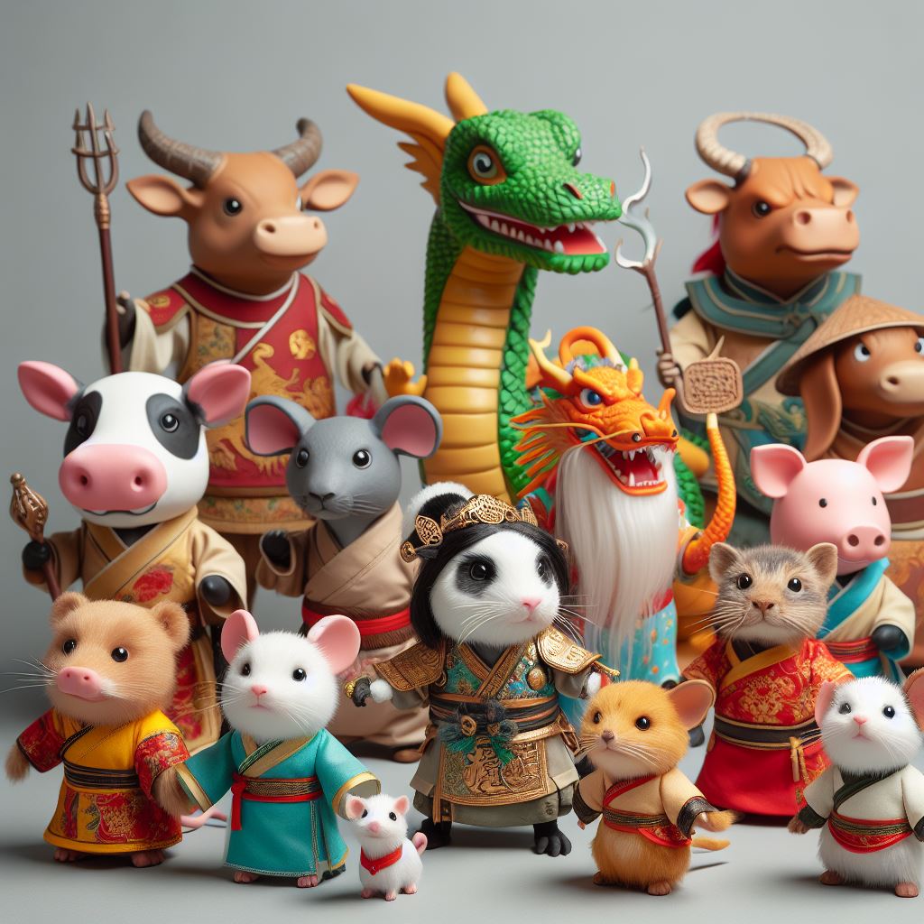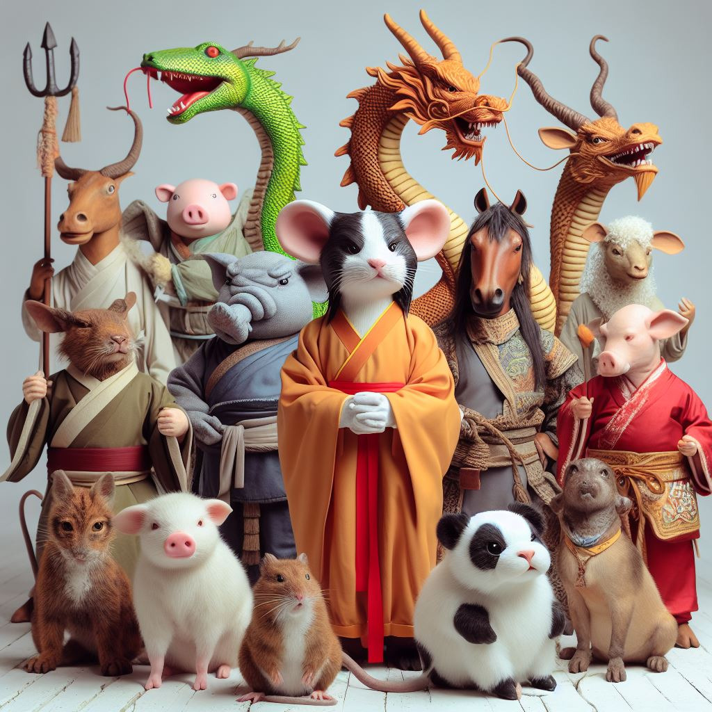 고대 중국의 전설에 따르면, 신이 동물들을 소집하여 먼저 도착하는 동물의 순서대로 12간지를 정했습니다. 쥐는 소의 등에 몰래 올라탔다가, 소가 쉬는 동안 뛰어내려 1등을 차지했다는 이야기가 전해집니다.