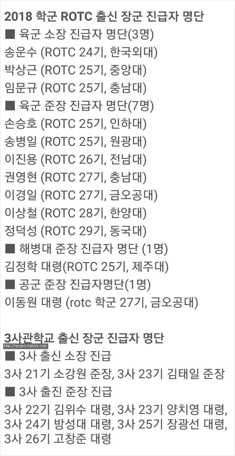 2018년 군 장성인사 중장급 이하 장군 진급자 발표.