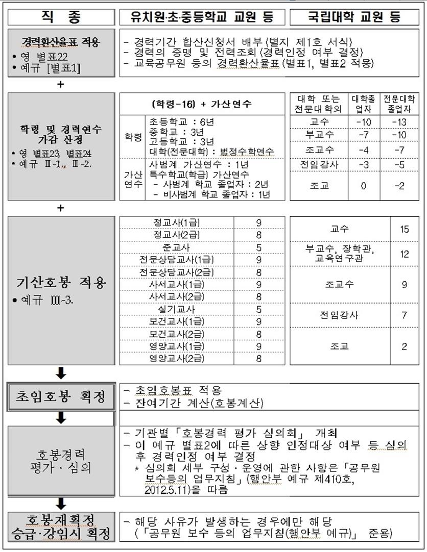 위의 표가 바로 교육공무원 호봉획정 표입니다.