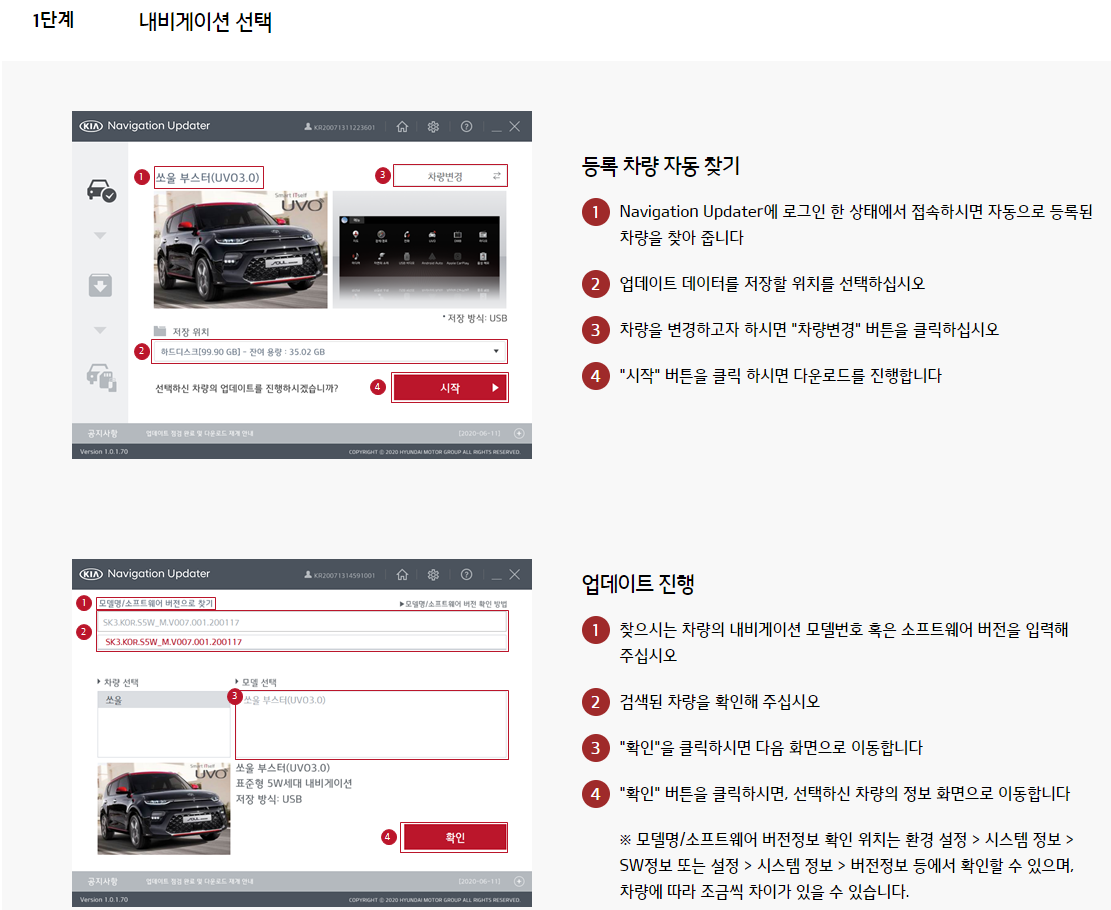 2020년 12월 현대 기아자동차 내비게이션 업데이트 방법