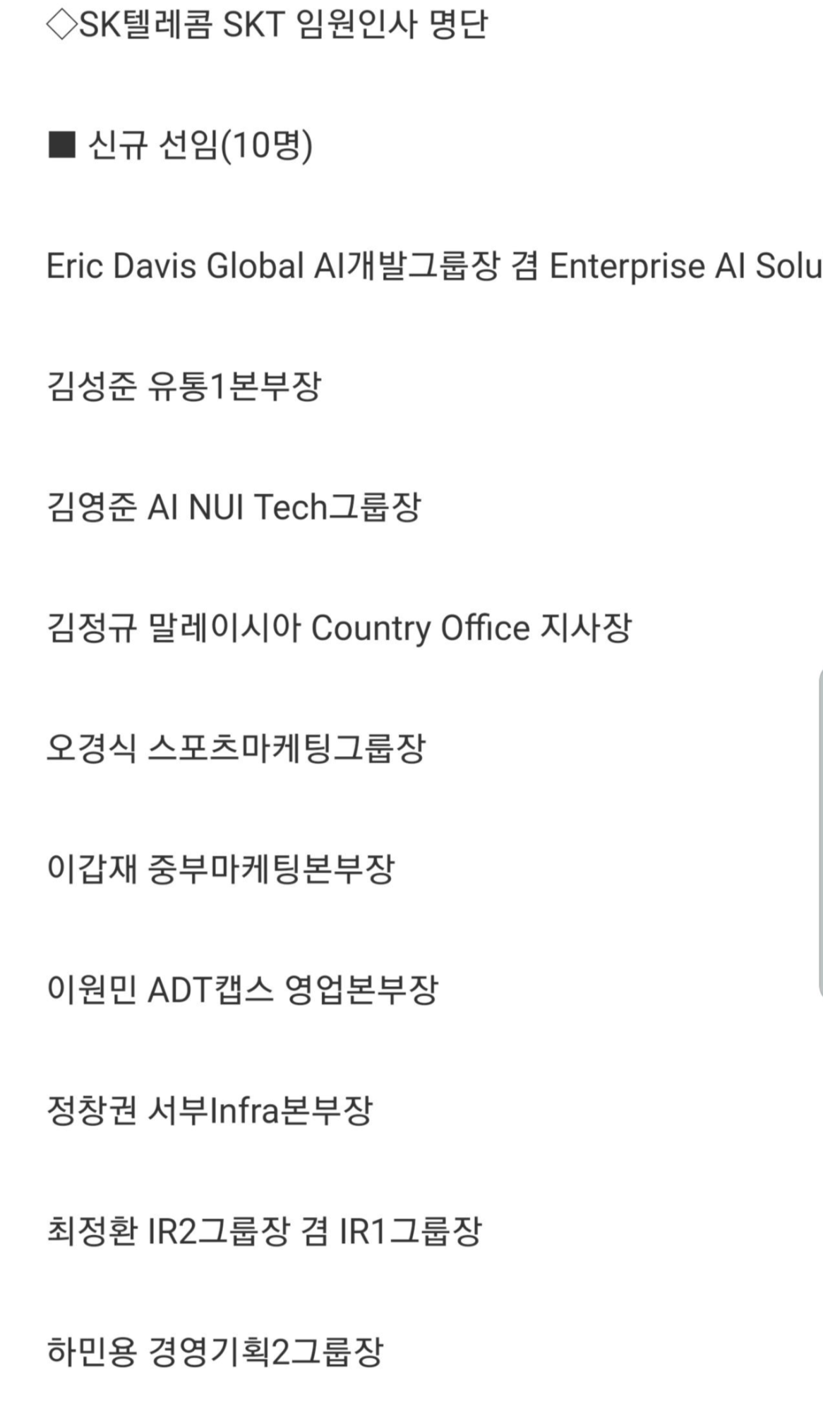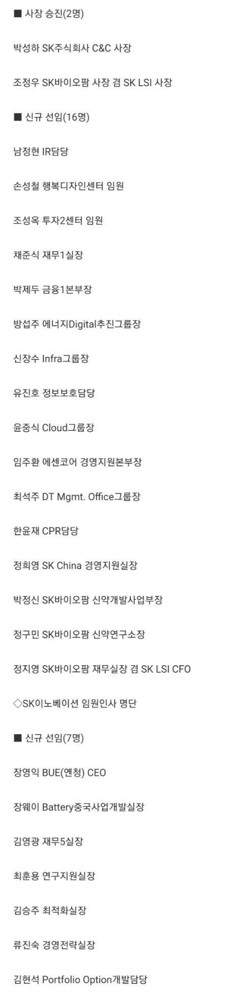 2020년 sk그룹 임원인사 명단이다. SK이노베이션 승진 인사 명단 포함.