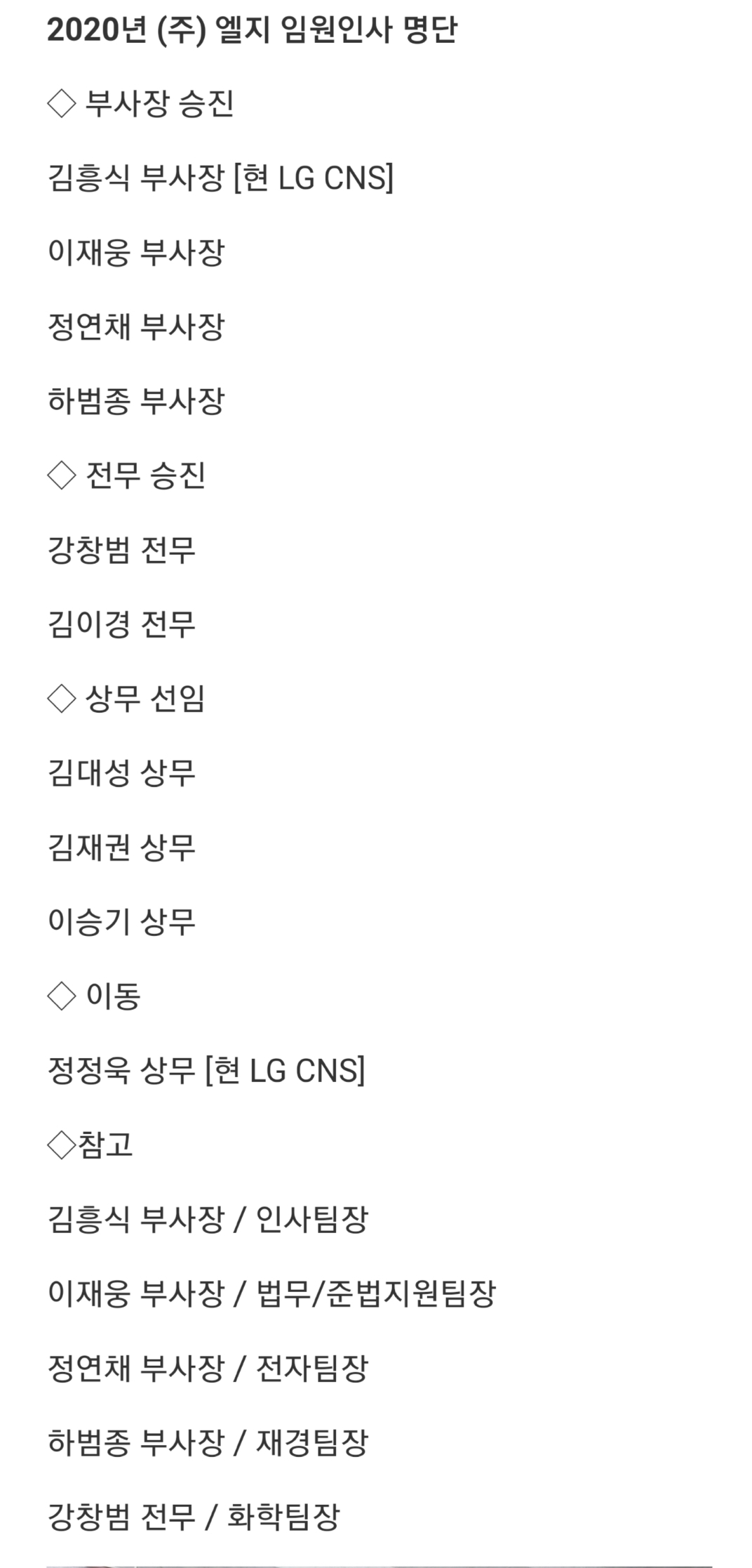 .먼저 2020년 엘지 그룹 임원 인사 명단이다.