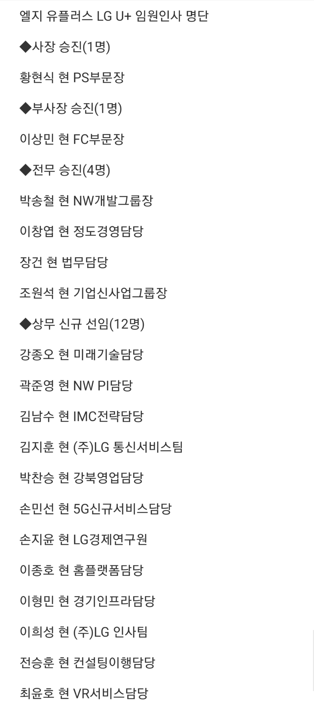 엘지 유플러스 임원인사, 엘지 디스플레이 임원인사 명단 등은 다음과 같다.