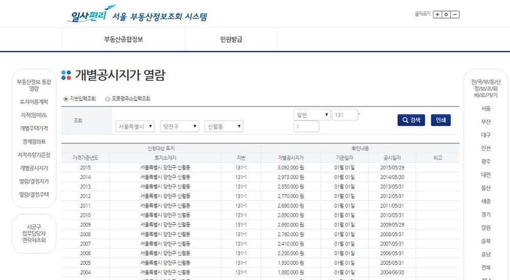 서울의 개별공시지가를 검색해봤습니다.