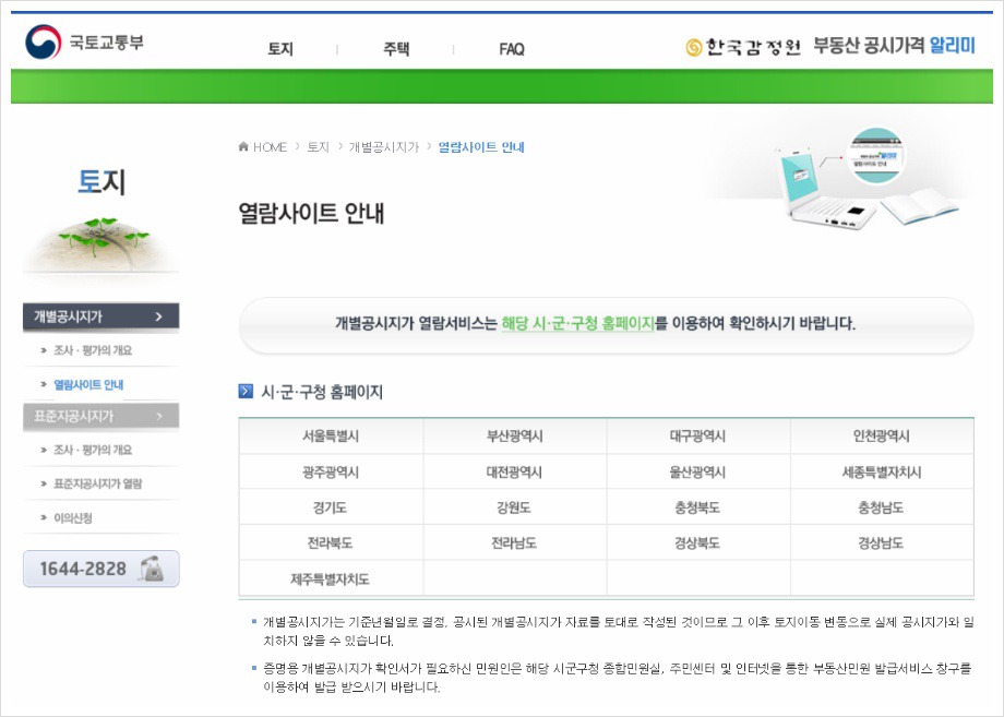 하지만 여전히 토지 공시지가는 각 지자체에서 관리합니다.