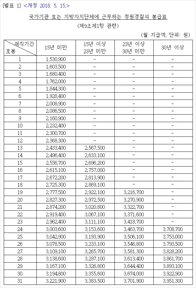 2019 청원경찰 봉급표는 얼마나 될까?입니다.