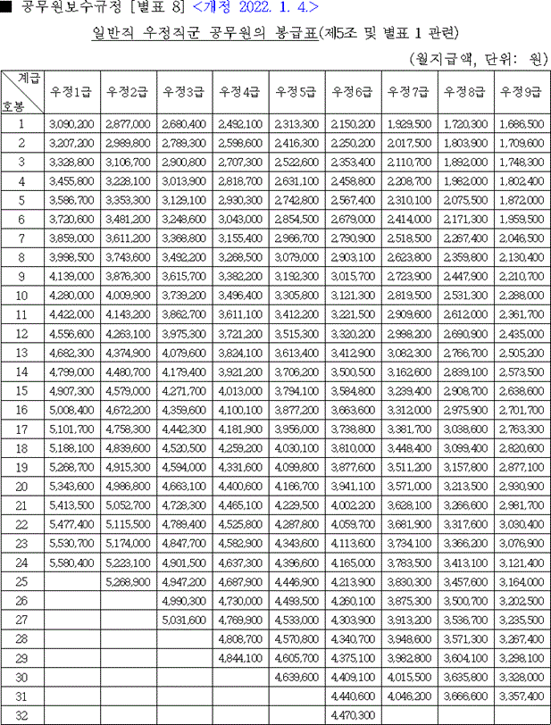 글 제목처럼 먼저 2022년 공안직공무원 봉급표를 2022 타 직렬 봉급표보다 먼저 소개한다.
