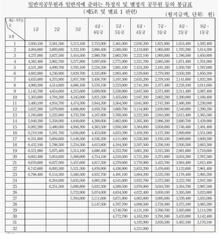 2021공무원봉급표 알려드림.